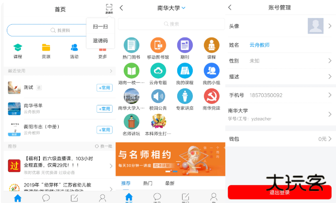 3、学习学校专业课程,进行小组讨论,查看本校通讯录。