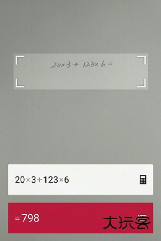 1、打开APP后用户只需要将镜头对准所列出的算式,APP即可自动识别该算式,并在屏幕中列出,从而计算出相应的答案。