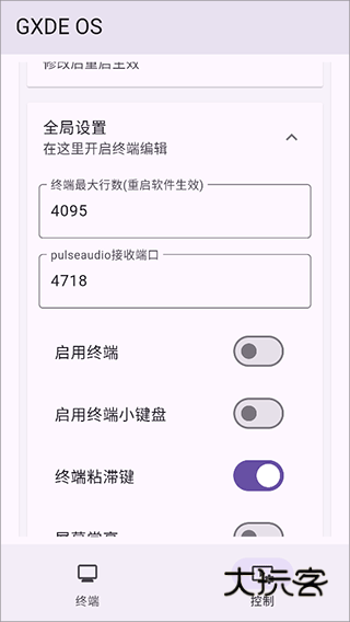 4、在开启之前可以在控制界面中进行键盘、使用方式、全局设置等相关设置