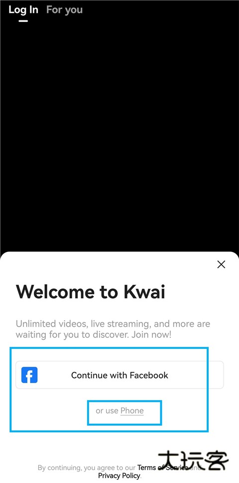 2、用户可以使用Facebook账号登录,也可以使用手机号登录。