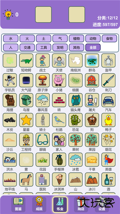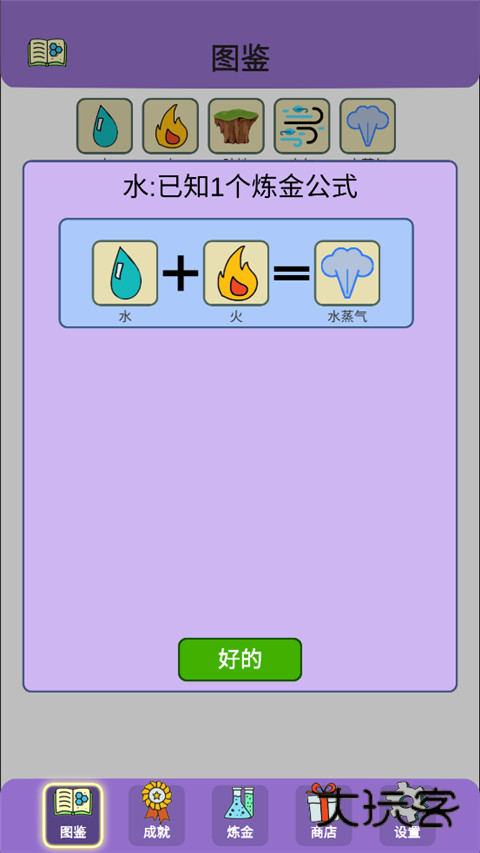 2、逐步解锁更高等级的元素,拓展更多的炼金组合。