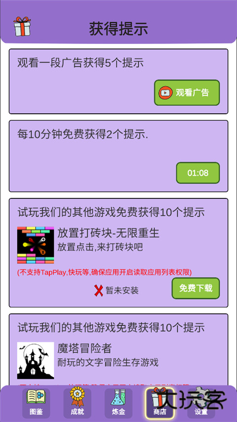 4、如果说你实在不知道怎么炼金的话或是卡壳了,这个也是可以提示的哦!