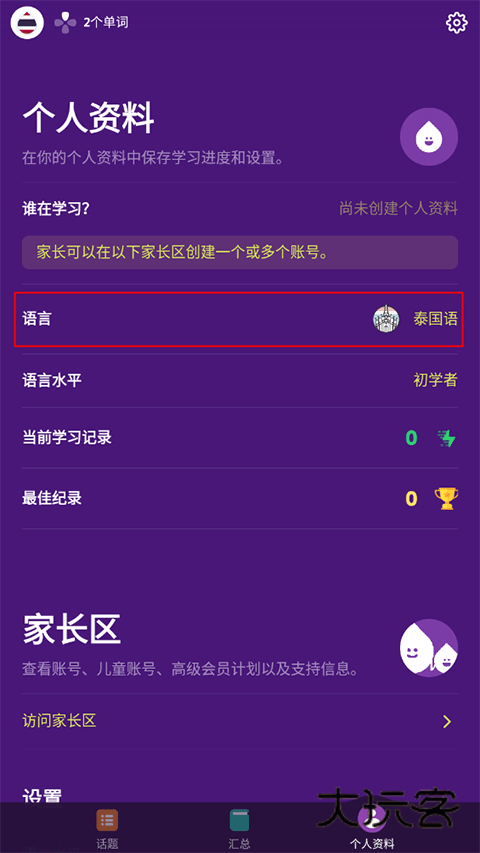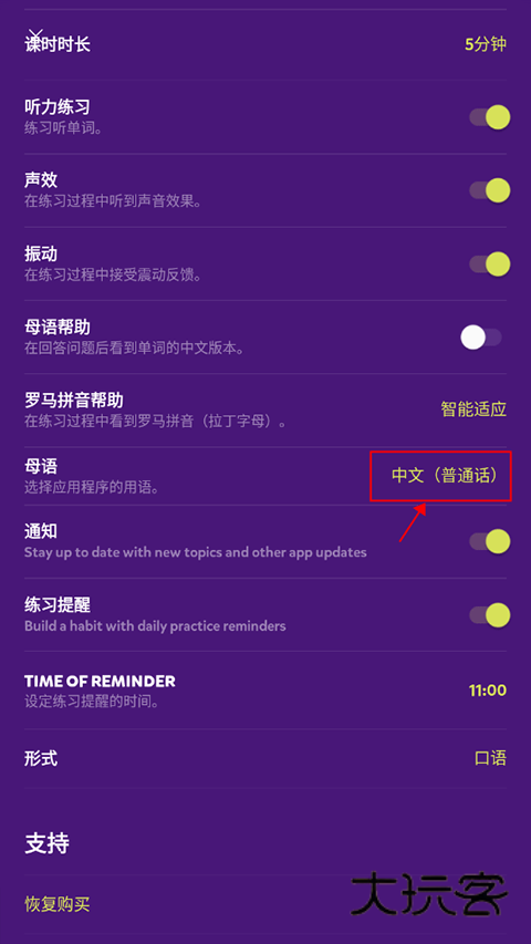 2、在语言界面选择你想学习的语言,点击即可切换。