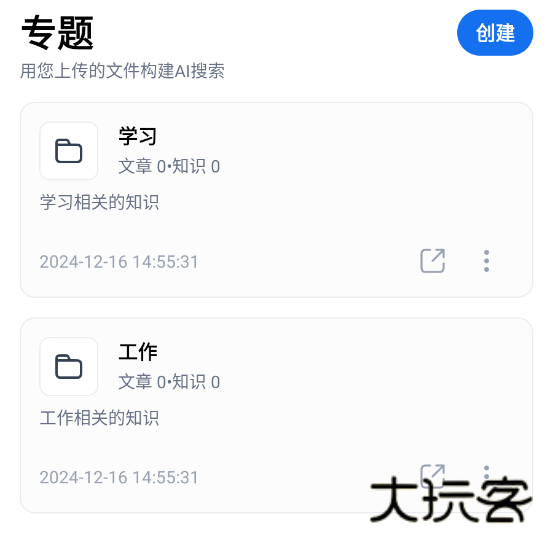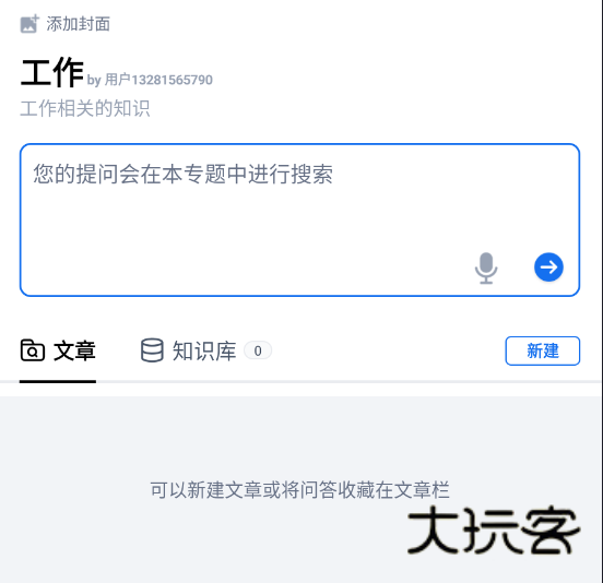 玩家可以上传自己的文件构建AI搜索,由两部分组成,分别是文章与知识库。