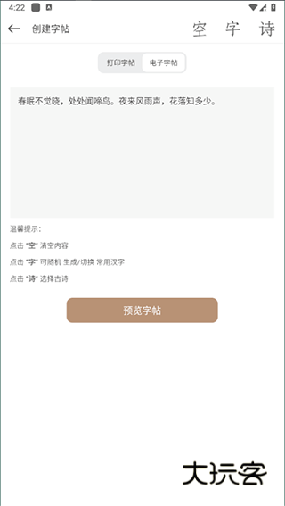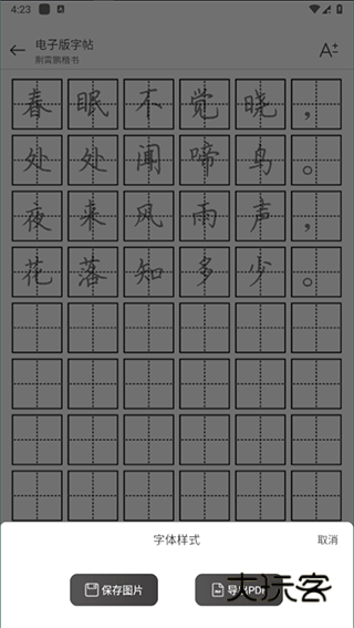 6、不知道练什么内容?App内置三百首古诗,常用汉字3000字,可轻松为您生成一篇字帖。