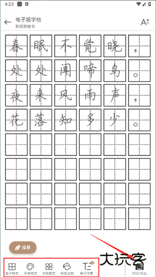 3、可生成打印版字帖,真正的用纸笔来练字。支持A4尺寸纸张。