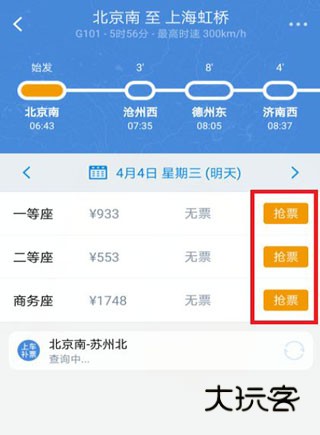 2、在里面能够获取详细的车票信息,以便通过详细信息筛选出合适的车票;