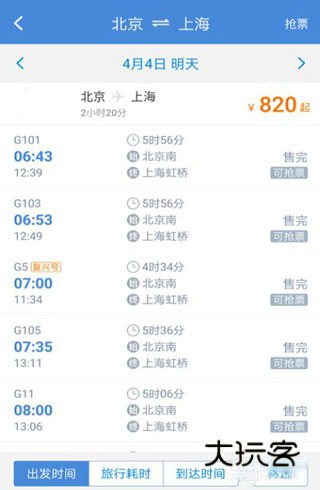 2、根据各自的安排选好您想要乘达的趟数,耗时可见,然后按进对应一栏。