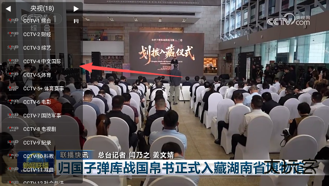 2、点击左侧列表查看节目单,选择频道可切换至指定播放观看界面。