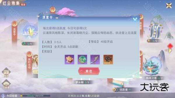 从40级开始开放流星令,49级开放玄宗委托。流星令为组队日常玩法,能够获得大量装备和日常材料,而玄宗委托则是单人试玩挑战。
