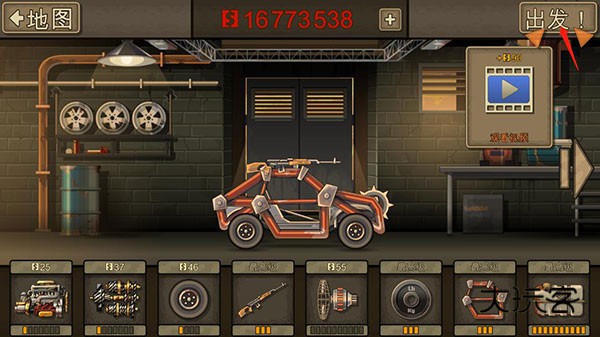 5、点击车库进入,可自由购买装备、武器、燃料等,再进行出发。