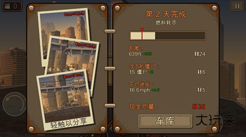 7、直到燃料耗尽,这一天才结束,可回到车库购买装备下一日出发。