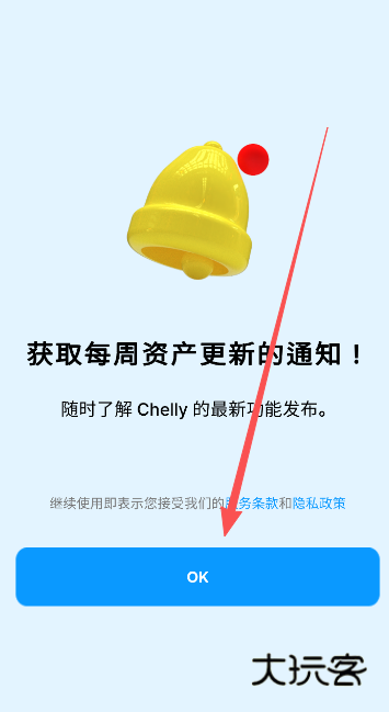 1、确认获取Chelly应用最新通知,并了解完整的软件使用服务条款和隐私政策。