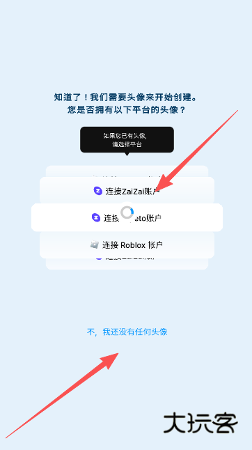 3、从以下平台中选择创建自己的人物头像,如果没有使用过这些平台,可选择不,我还没有任何头像。