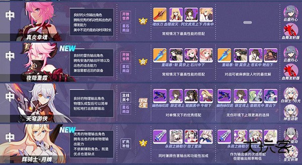 这些女武神大家应该是相当熟悉了,不过辉骑士月魄确实有点没牌面了,作为3.9版本的初始s角色,实战强度有点差强人意,没毕业配置的情况下伤害还是有点不够看的。而雷八作为sp角色能有排面还是相当不错的,大概率是因为雷伤体系的磁暴跟鬼铠辅助比较bug,小伙伴们也可以养一个。