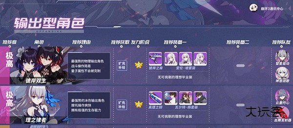 当然还是大家熟悉的理鸭跟希儿,分别为元素天花板以及物理伤害天花板,而且最近理鸭加入扩充卡池,需要的小伙伴不妨去试试运气。不过这两位女武神相当吃装备以及圣痕,在没毕业配置的情况下,伤害没那么夸张。