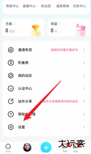 1、在喜弟app【我的】页面,找到“设置”,点击它。