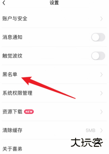 2、进入到设置页面后,点击”黑名单“按钮。