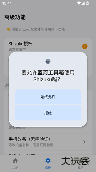 3、激活的方式十分简单在本站下载安装Shizuku后,按照其教程先激活Shizuku,然后就可以在蓝河工具箱中进行授权了。