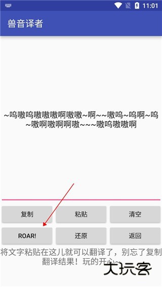 3、然后可以看到小编点击了“roar!”就出现了一系列的可爱的嗷呜嗷呜了。