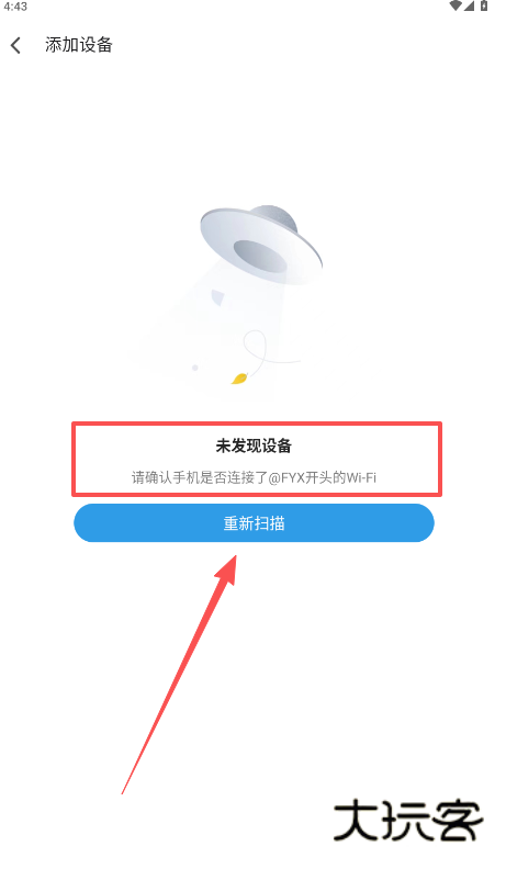 4、如果提示为发现设备,请检查手机是否连接了@FYX开头的Wi-Fi。