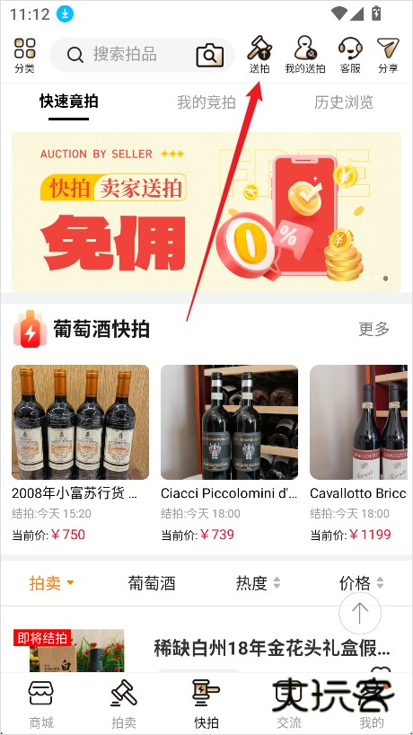 2、在页面上方选择【送拍】功能;