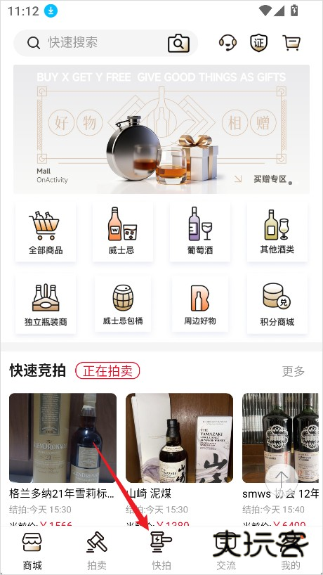 1、打开酒虫网App,在下方导航栏点击【快拍】;