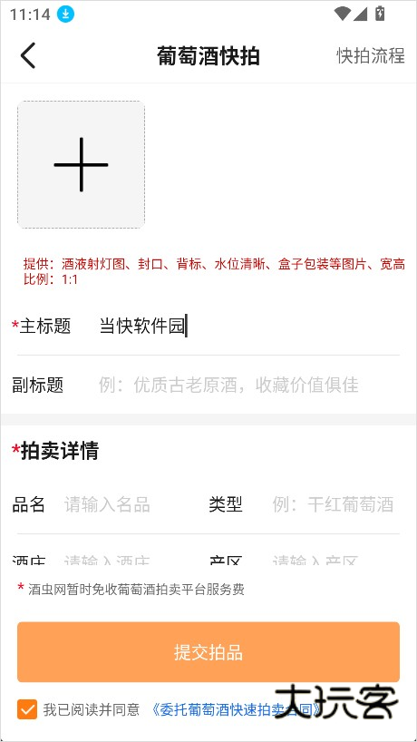 5、填写完整的酒品资料并提交,即可完成送拍。