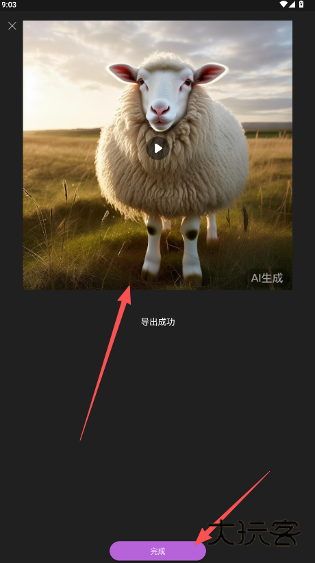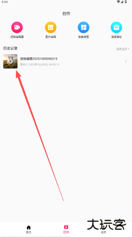 6、完整以上编辑操作以后,在创作区可点击查看刚才你所完成的视频编辑创作。