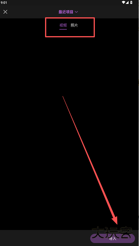 3、从设备现有的视频图片中找到想要编辑制作的内容部分,点击“导入”。