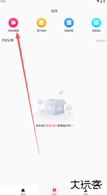 1、打开进入软件内部,点击“视频编辑器”开始创作。