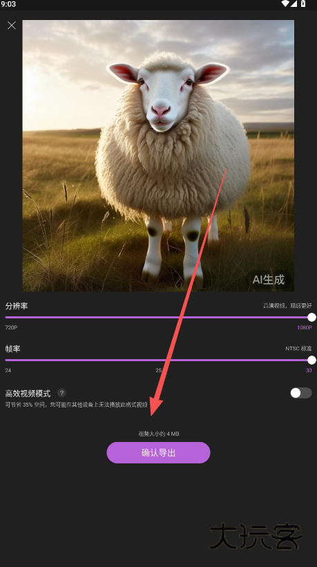 5、编辑效果如果达到了你的需求请点击导出,导出前可根据实际成片效果对它的分辨率、帧率等进行修改,点击“确认导出”,耐心等待导出效果加载完成。