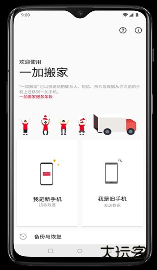1、打开【一加搬家】,选择【我是新手机】,再选择旧手机的类型,屏幕上方将显示下载【一加搬家】的二维码,如已在旧手机提前下载安装,请在新手机点击继续,完成后续数据迁移。