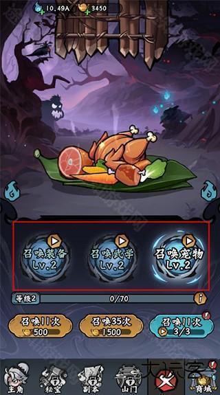 4、在召唤中可以召唤装备、武学、宠物来提升我们的实力。