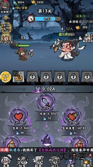 1、学习绝顶武学突破境界,驯化传世神宠跟随自己行走江湖,惩恶扬善。