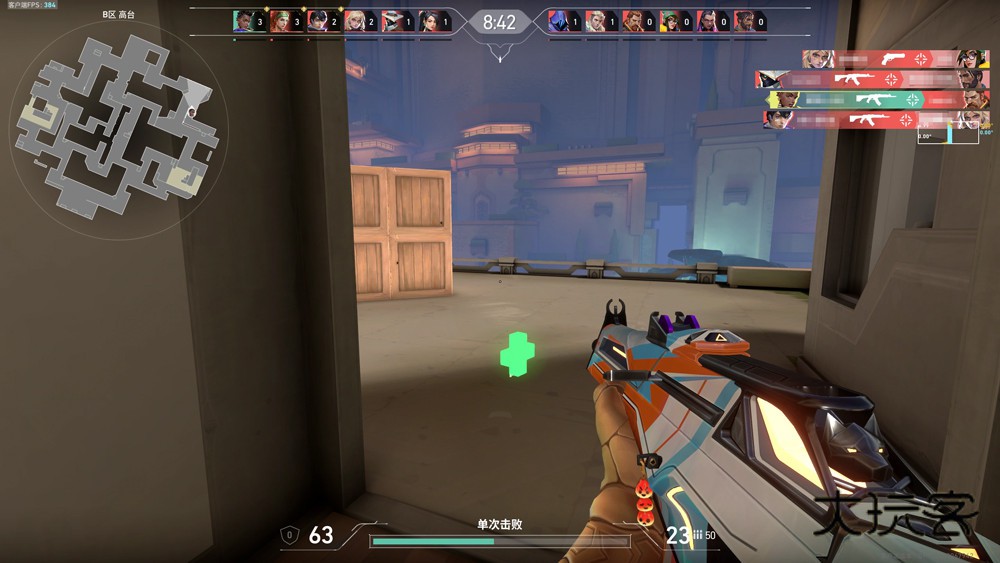 乱斗模式是一个高效的练场景。在该模式中,玩家将随机匹配普通模式的地图,10人自由竞技且不能使用技能,在规定的9分钟时间内需要尽可能多地获得击杀,率先达到40杀即可获胜。被击败的玩家会在随机地点复活,击杀敌人后可拾取掉落的医疗包,恢复全部生命值和护甲。