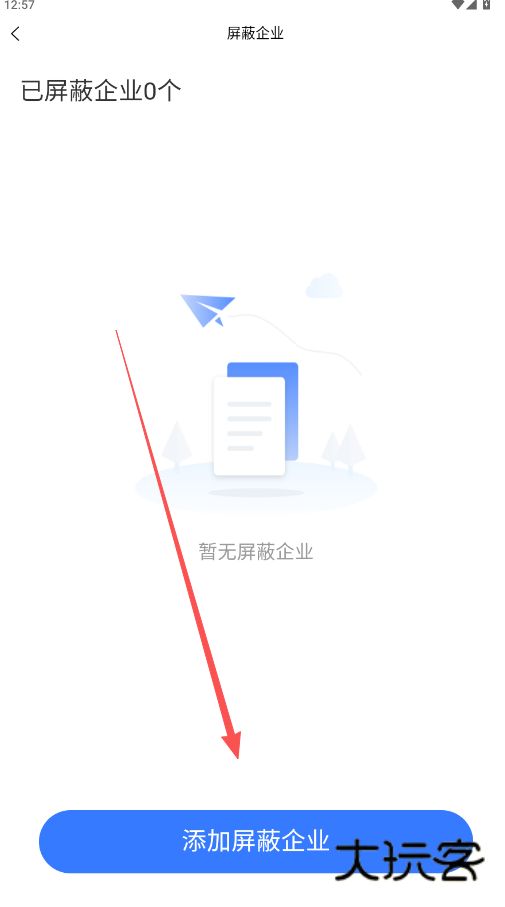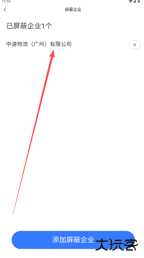 8、在企业屏蔽栏可以看到刚才你所添加屏蔽的企业,如果还需要屏蔽,请继续点击下方“添加屏蔽企业”选项,完成更多此项操作。