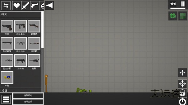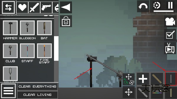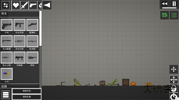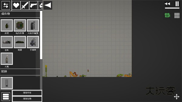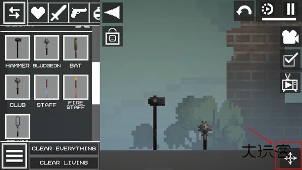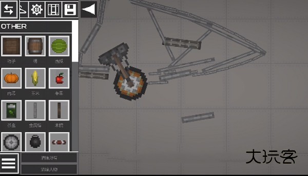 2、进入游戏如图,点击左上角菜单按钮,添加两个物品在地上;