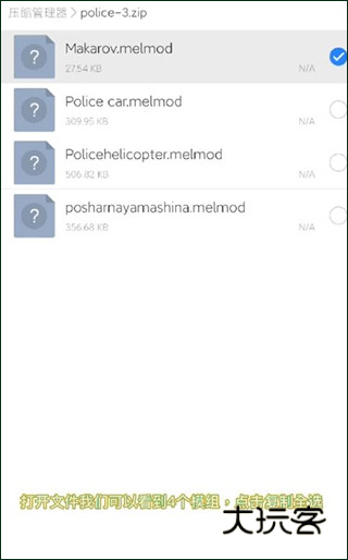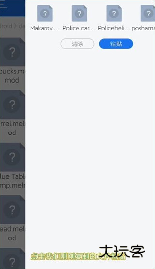 1、在第三方渠道下载好的模组,将文件使用“ES浏览器”打开,然后复制全部模组