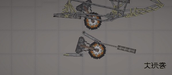 3、需要注意的是,这种不稳定的结构一定要加上支柱,即机头中间的长铁块,调成无重力不碰撞,链接到机头外壳即可