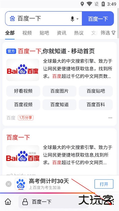 1、 首先我们进入火狐浏览器安卓版当中,然后在搜索处搜索自己的需求,小编这里以百度为例;