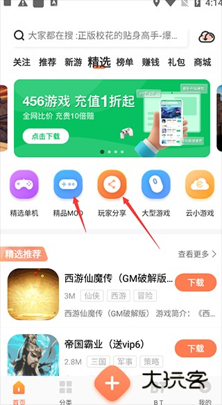 精选单机、精品MOD、玩家分享、大型游戏、云小游戏等多个分栏为玩家们提供全覆盖的游戏推荐服务,且还有着超多专属福利游戏,上线即送vip福利满满