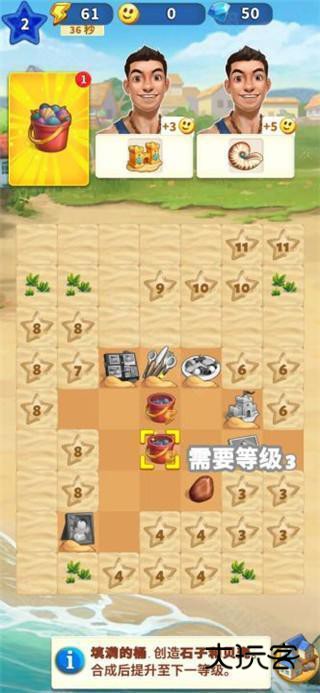3、通过合成相同物品,逐步打造更高级的物品,解锁小镇的区域和建筑。