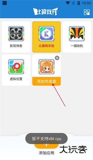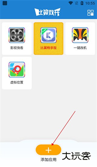 1、在本站下载安装比翼双开,点击首页的添加应用;