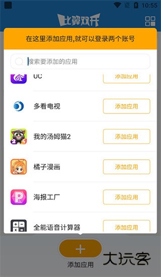 2、找到需要双开的应用,点击添加;