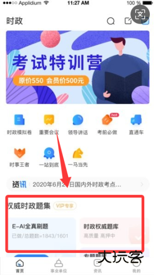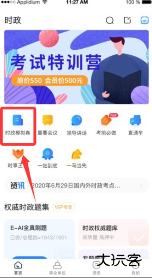 2、进行智能刷题,在题库中选择时政模块练习,系统会根据错题推荐相似题目强化训练。