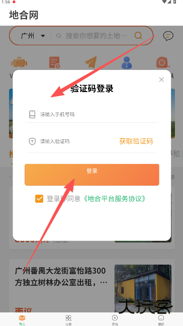 2、发布土地出租信息,涉及到钱财问题,为保证交易安全,请先通过手机号短信验证码登录。