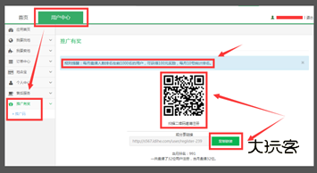 进入用户中心>推广有奖>推广码,通过用手机扫描二维码或复制链接可以将个人的邀请码发送给别人,被邀请者注册成为地合网用户,并且购买了看地服务时。