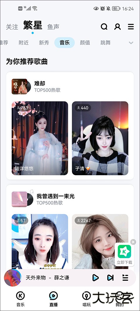 演艺直播,上万美女主播全天候实时互动,你点歌,我来唱。