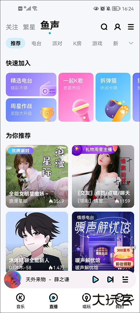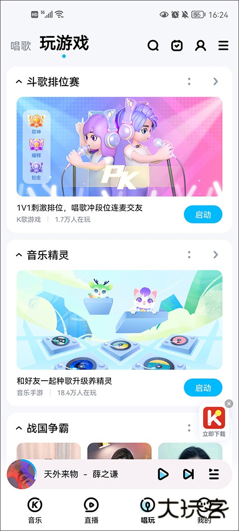 酷狗音乐2025最新版是一款国内很受欢迎的免费听歌app,海量的歌曲资源免费听歌,除了听歌以外,还有听书、K歌、电台等功能,全部都是可以轻松选择使用的,听到好听的歌曲可以收藏到自己的歌单中,你也可以收藏别人的或者官方的歌单,这里每日推荐都是根据你的听歌爱好为你筛选的,听的越多推荐得越准,超多音质路线可以选择,各种音乐场景任你切换!